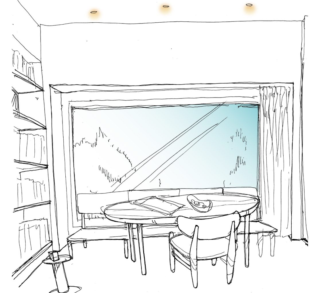 いい場所にピクチャーウィンドウをつくってソファーコーナーに。