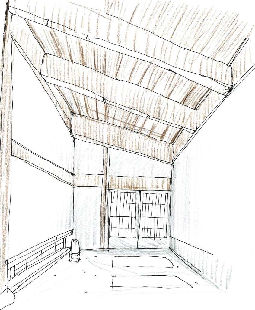 古民家リノベーション案です。配線のない玄関です。照明は行燈と自然光で。